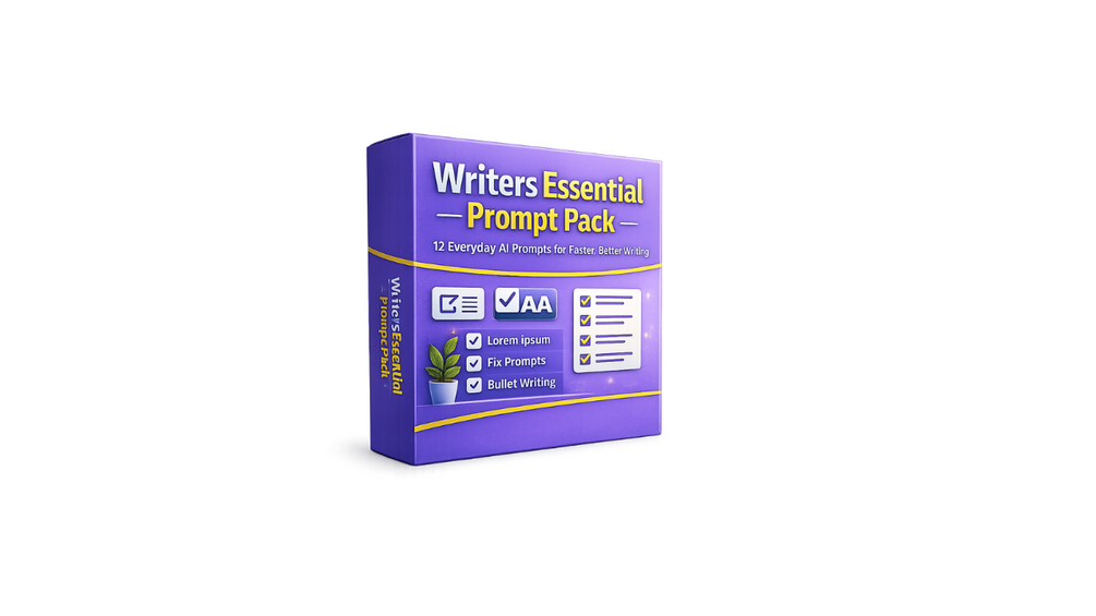 The Writer’s Essential Prompt Pack is a simple, practical set of 12 ready-to-use prompts built for one reason: